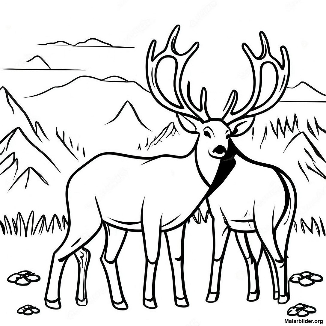 Ladda ner utskrivbar PDF av Älgfamilj På Ängen Målarbild