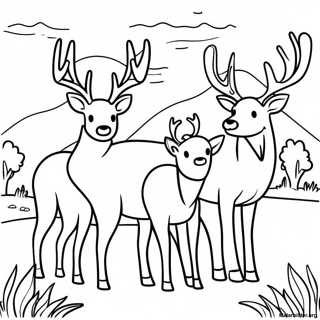 Ladda ner utskrivbar PDF av Älgfamilj På Ängen Målarbild
