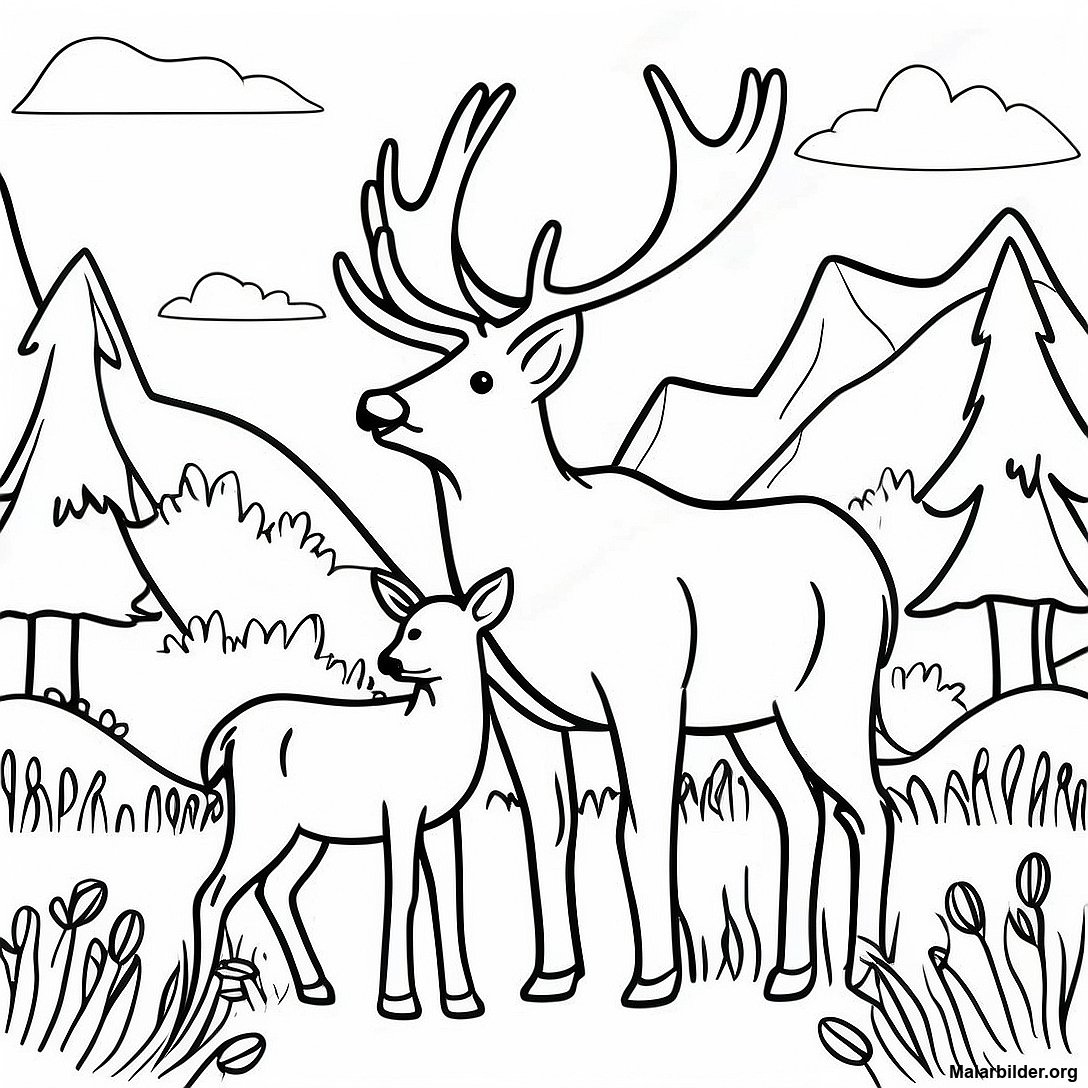 Ladda ner utskrivbar PDF av Älgfamilj På Ängen Målarbild