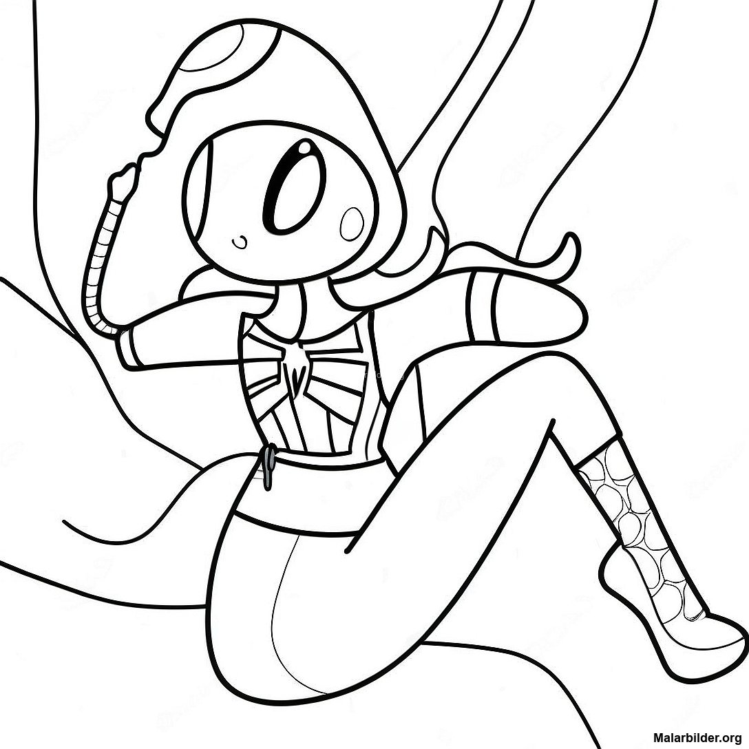 Ladda ner utskrivbar PDF av Äventyrlig Spindel Flicka Målarbild