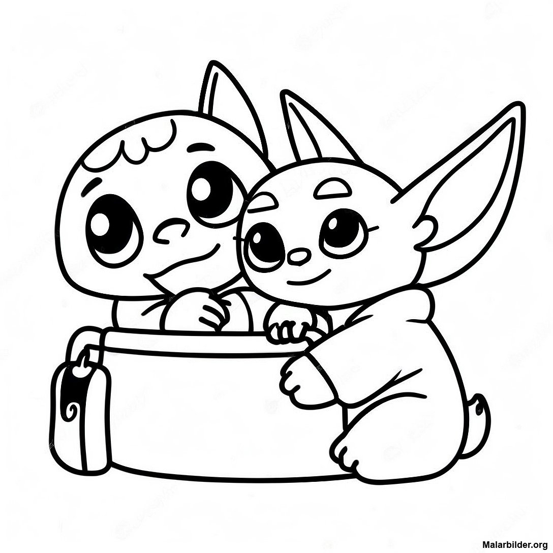 Ladda ner utskrivbar PDF av Äventyrlig Stitch Och Baby Yoda Målarbild