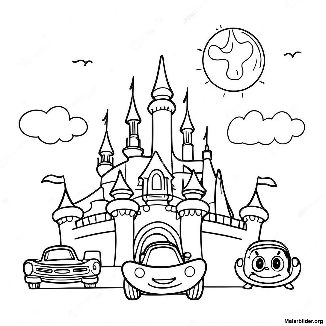 Ladda ner utskrivbar PDF av Äventyrliga Disneyland-Åkturer Målarbild