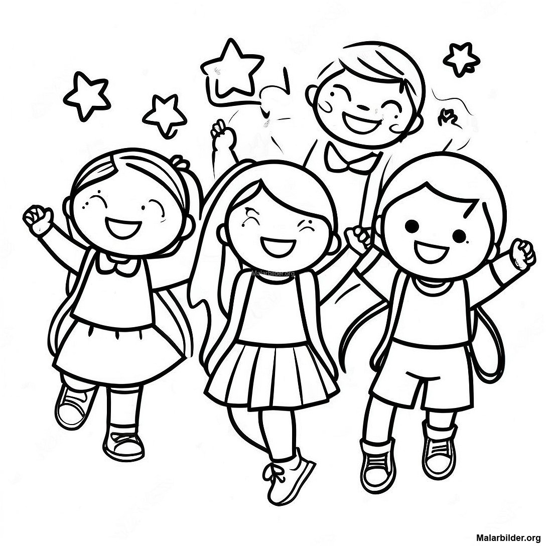 Ladda ner utskrivbar PDF av Barn Som Firar Skolavslutning Målarbild
