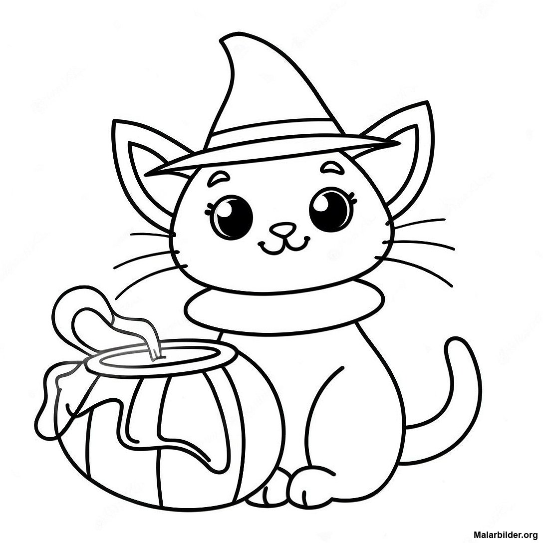 Ladda ner utskrivbar PDF av Bedårande Häxa Katt Målarbild