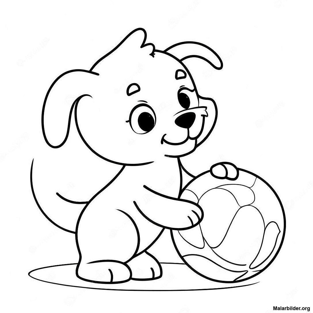 Bedarande Valp Som Leker Med Boll Malarbild