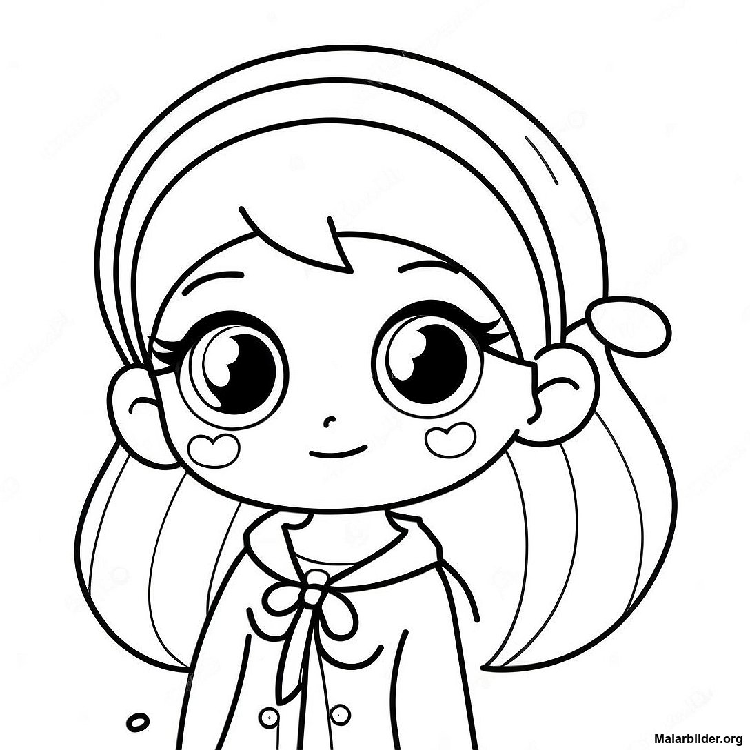 Ladda ner utskrivbar PDF av Charmig Kawaii Anime Flicka Med Stora Ögon Målarbild