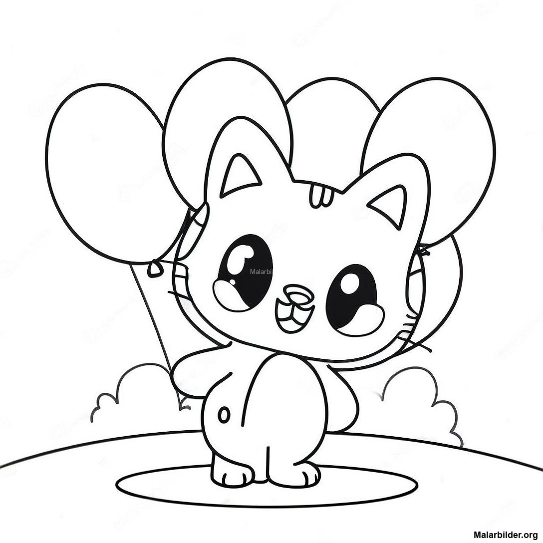 Ladda ner utskrivbar PDF av Chococat Med Ballonger Målarbild