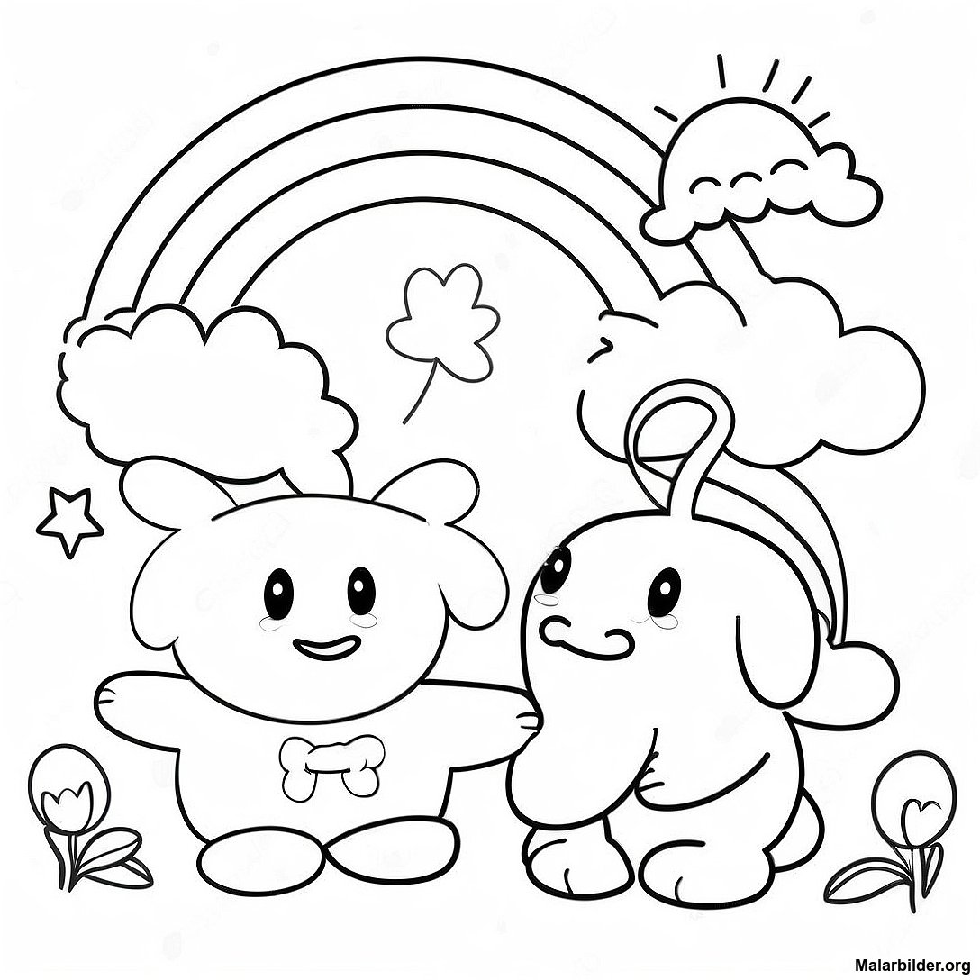 Ladda ner utskrivbar PDF av Cyan Regnbågsvänner Rolig Målarbild