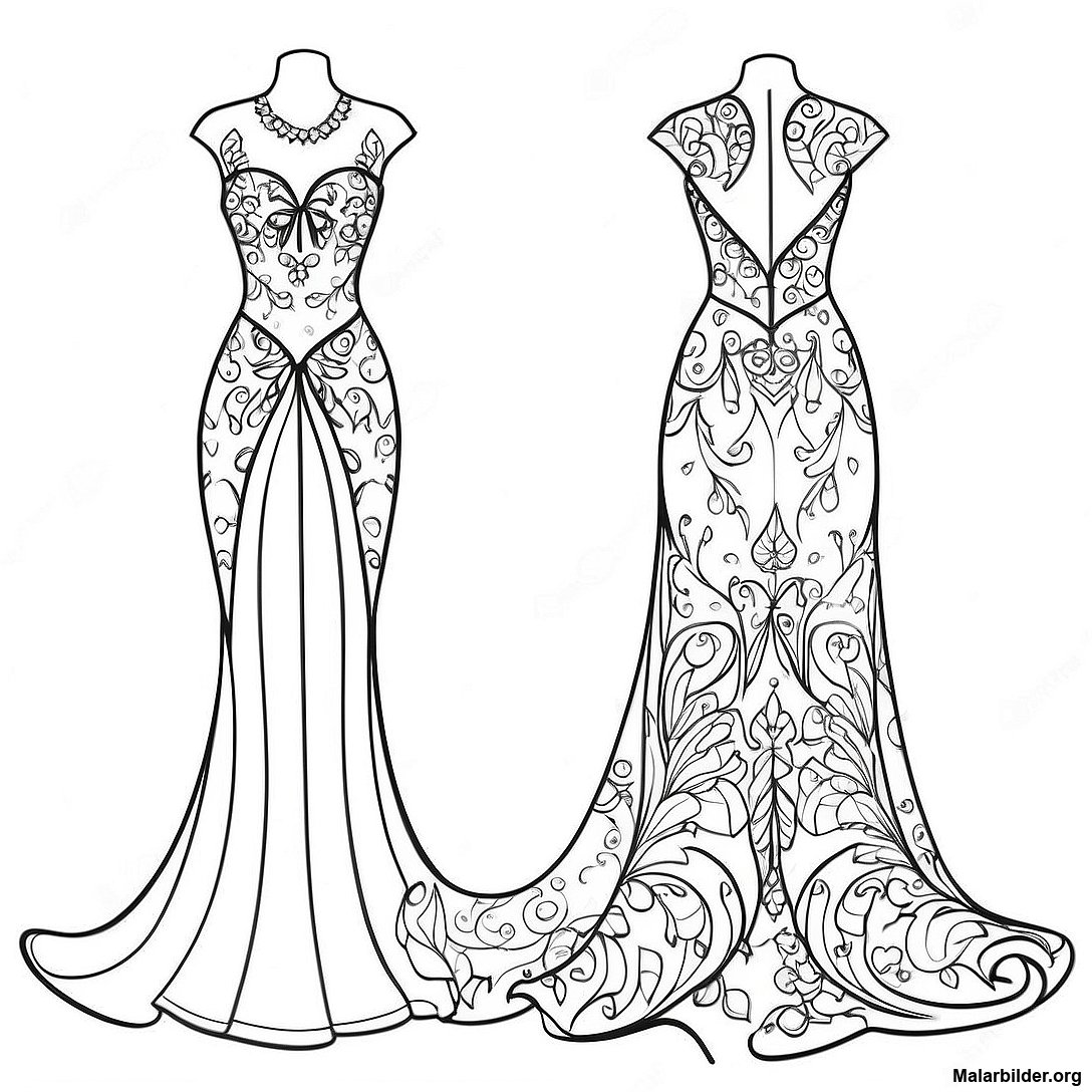 Ladda ner utskrivbar PDF av Elegant Aftonklänning Målarbild