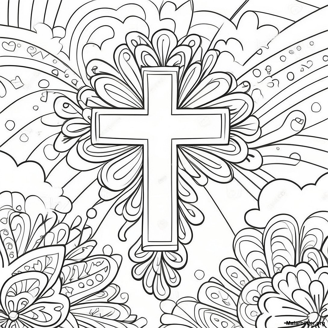 Ladda ner utskrivbar PDF av Enkelt Kors Med Hjärtor Målarbild