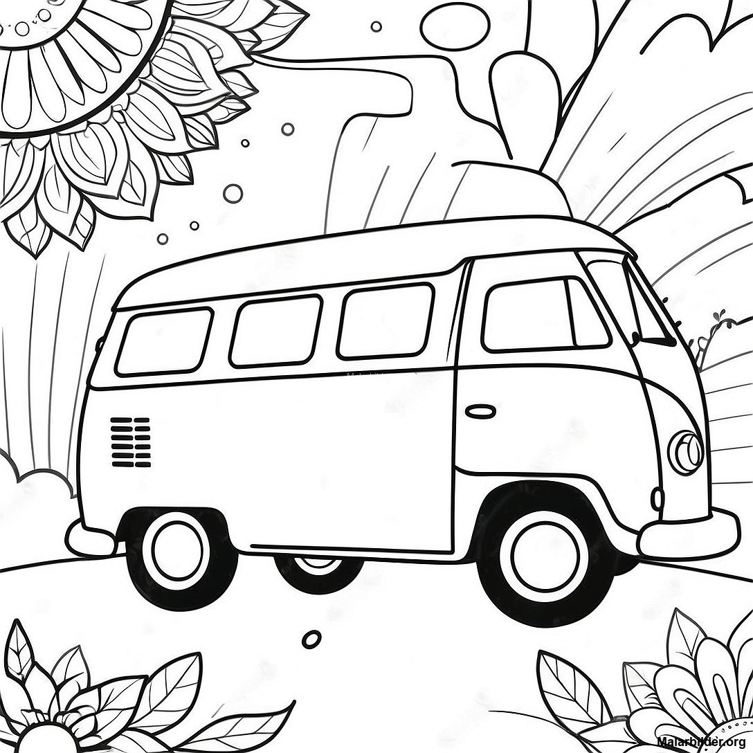 Ladda ner utskrivbar PDF av Färgglad Hippiebuss Målarbild