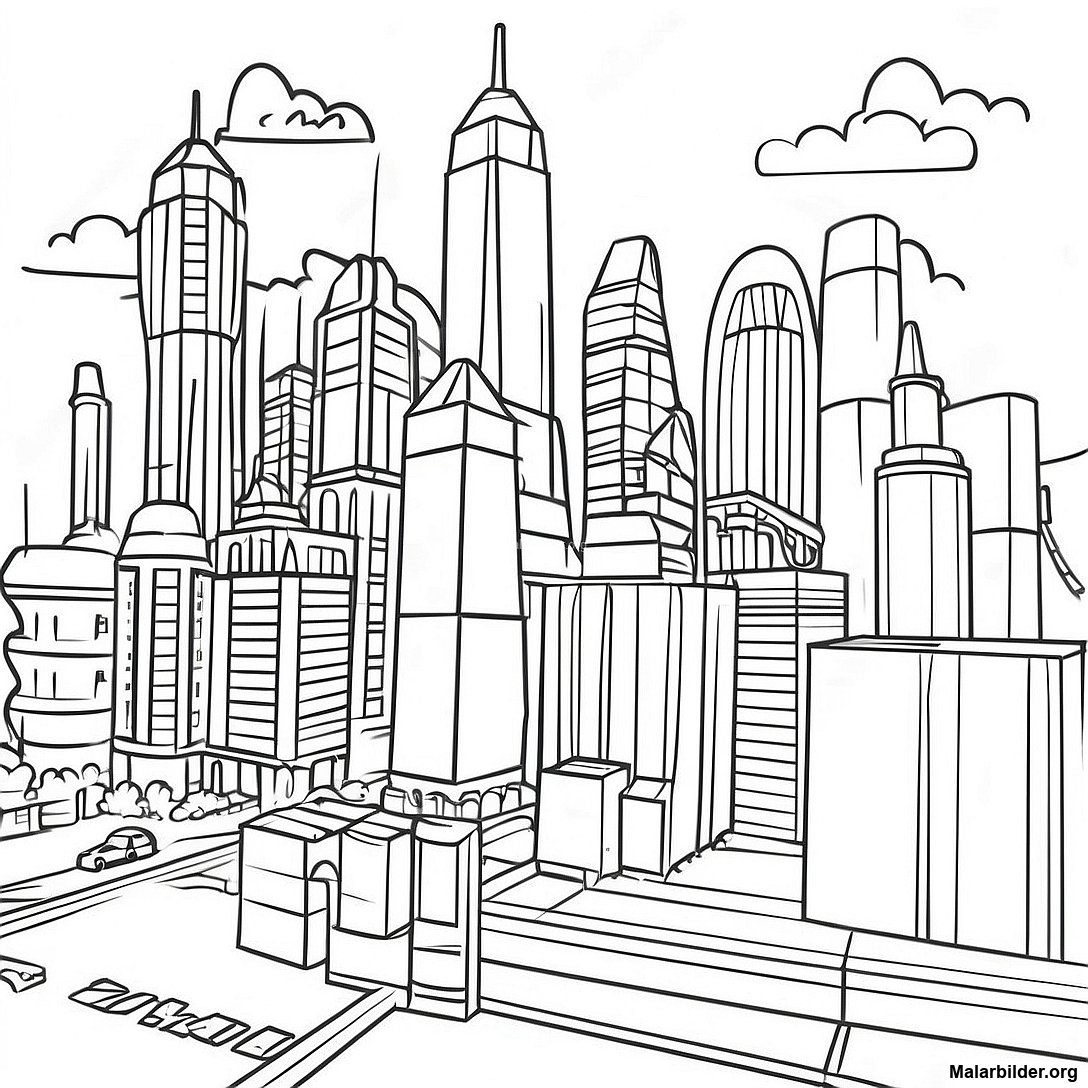 Ladda ner utskrivbar PDF av Färgglad Lego City Skyline Målarbild