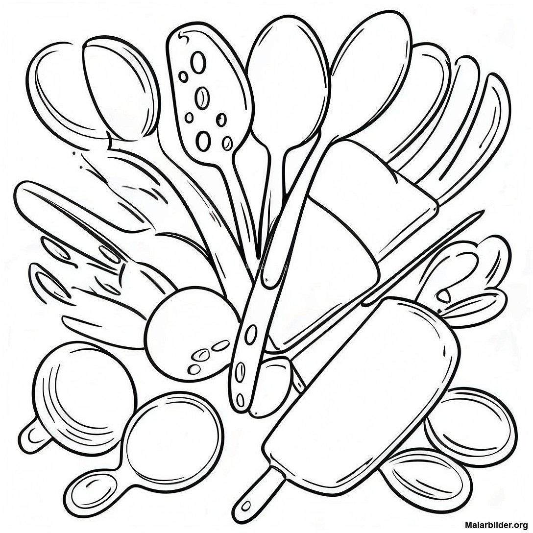 Ladda ner utskrivbar PDF av Färgglada Köksredskap Målarbild