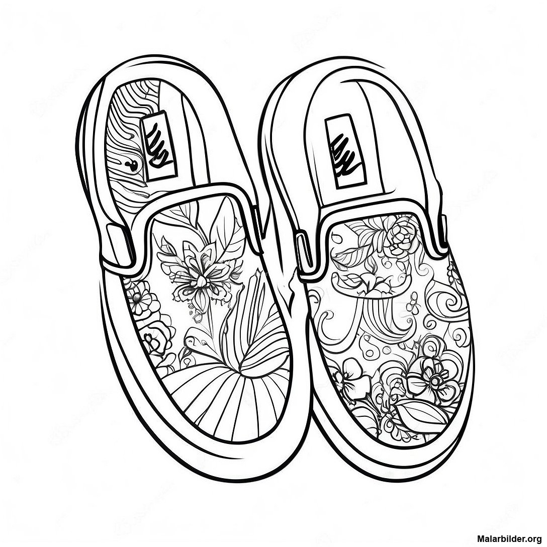 Ladda ner utskrivbar PDF av Färgglada Vans Slip-On Skor Målarbild