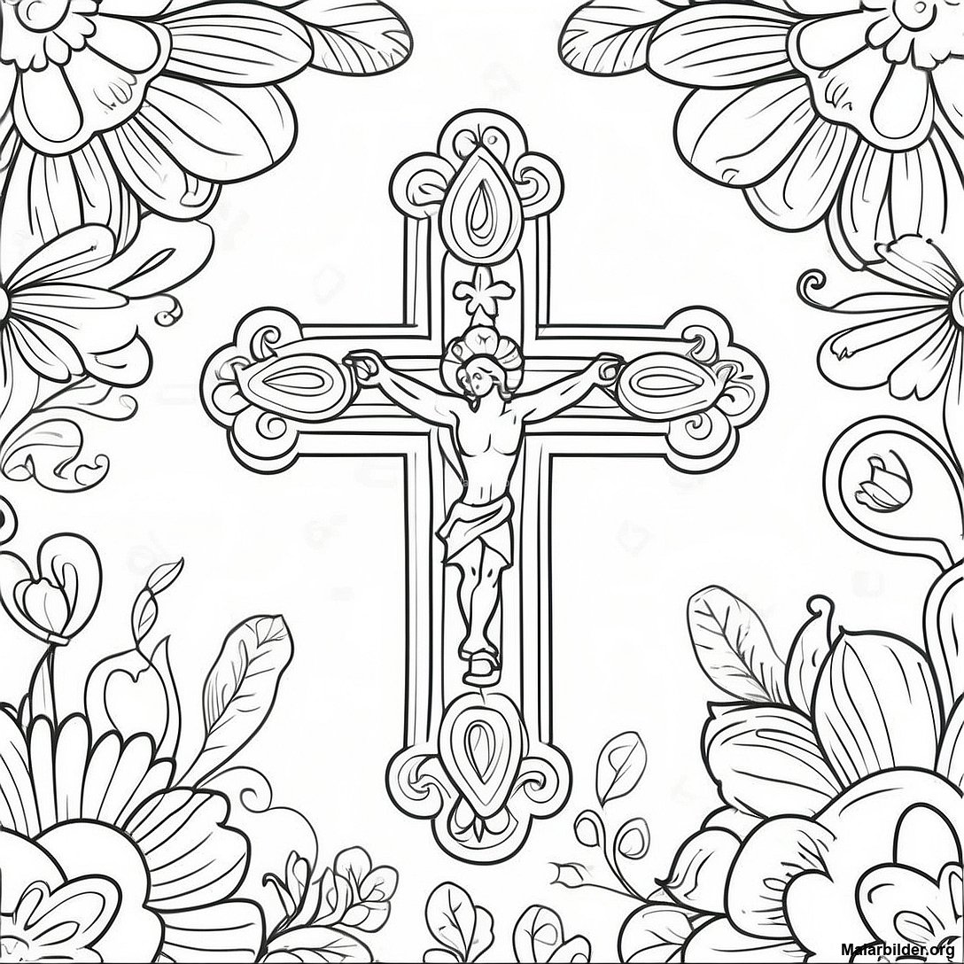Ladda ner utskrivbar PDF av Färggors Kors Med Blommor Målarbild