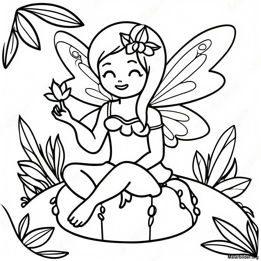 Ladda ner utskrivbar PDF av Förtrollad Älva Sitter På Ett Blad Målarbild