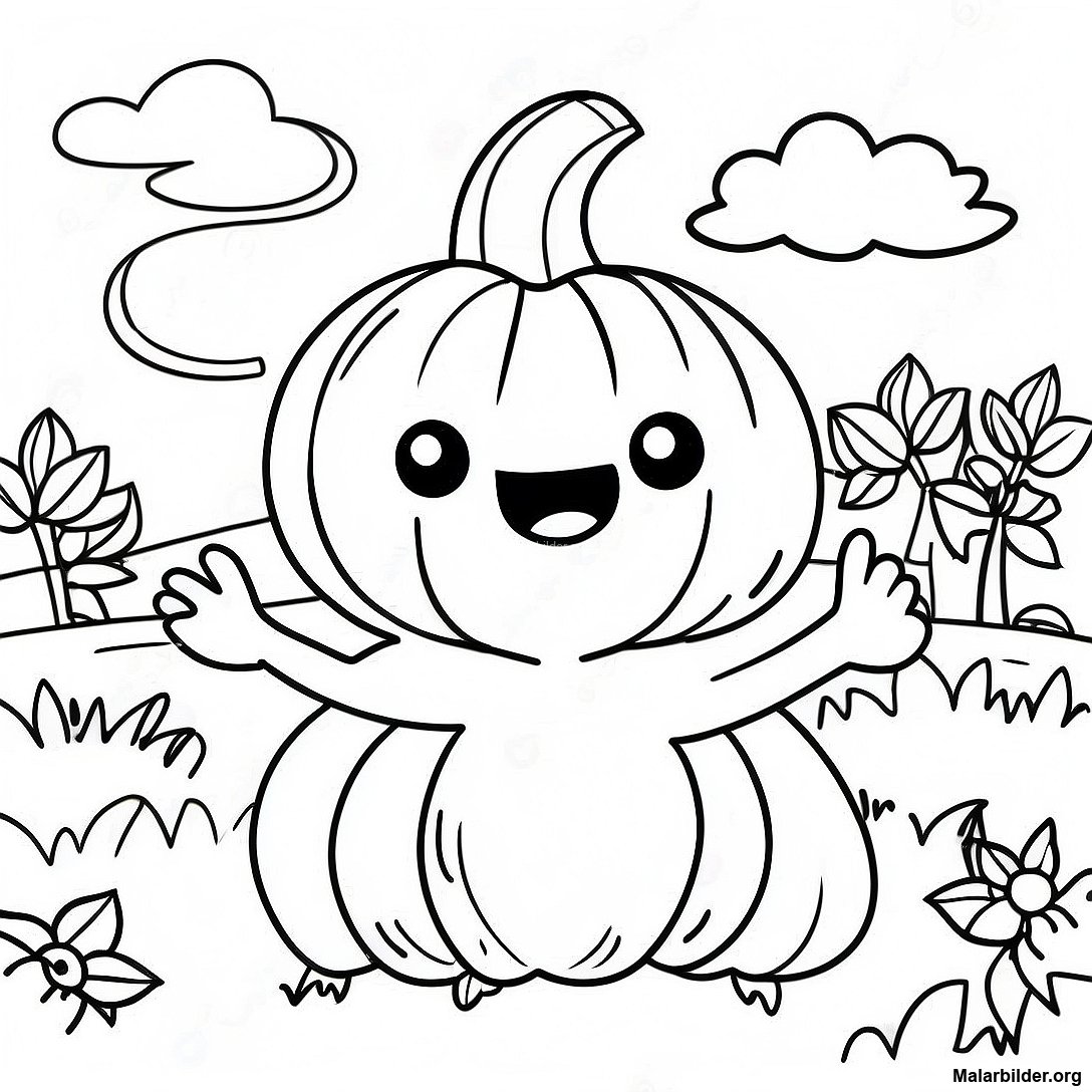 Ladda ner utskrivbar PDF av Glad Pumpaåker Målarbild