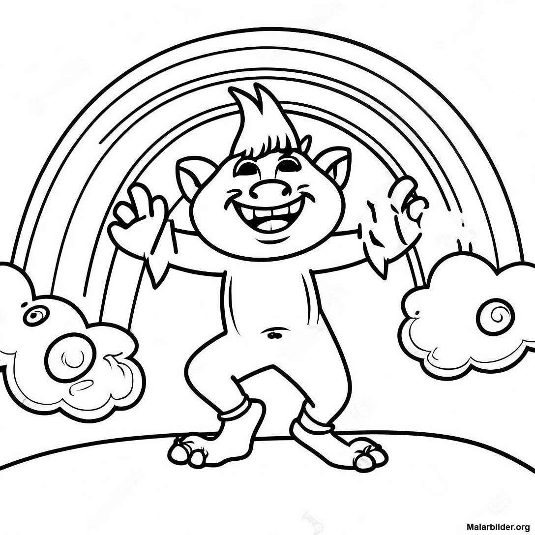 Ladda ner utskrivbar PDF av Glad Troll Dansar Under En Regnbåge Målarbild