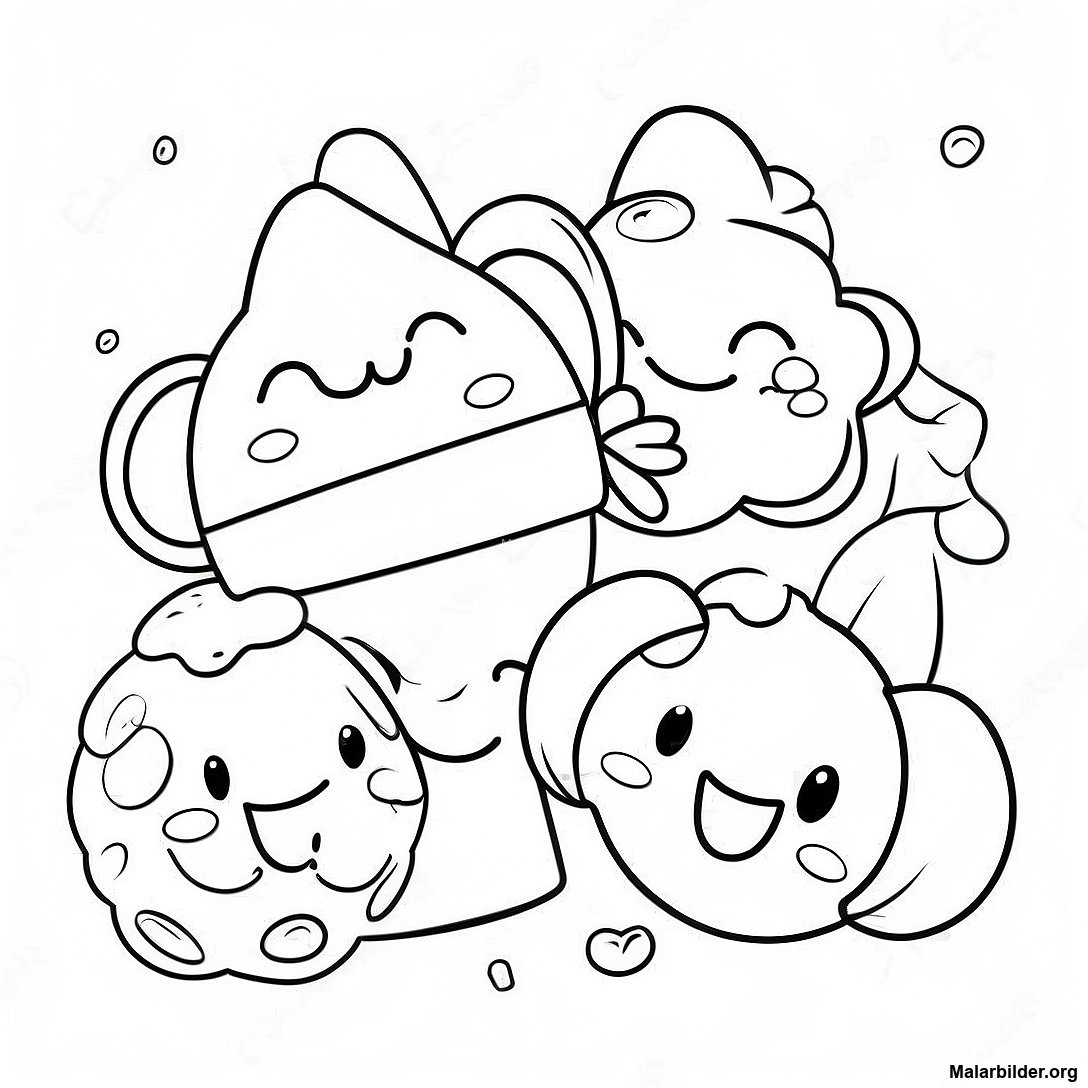 Ladda ner utskrivbar PDF av Glada Num Noms Som Leker Tillsammans Målarbild