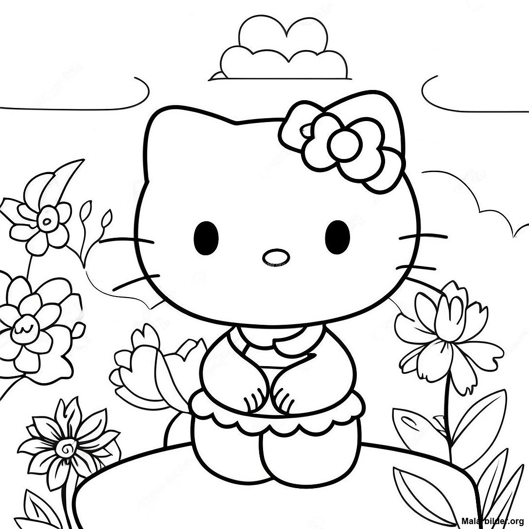 Ladda ner utskrivbar PDF av Hello Kitty Med Vänner Målarbild