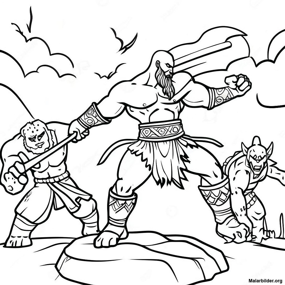 Ladda ner utskrivbar PDF av Kratos Slåss Mot Monster Målarbild