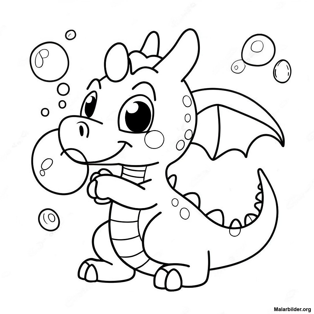 Ladda ner utskrivbar PDF av Lekfull Baby Drak Som Blåser Bubbles Målarbild