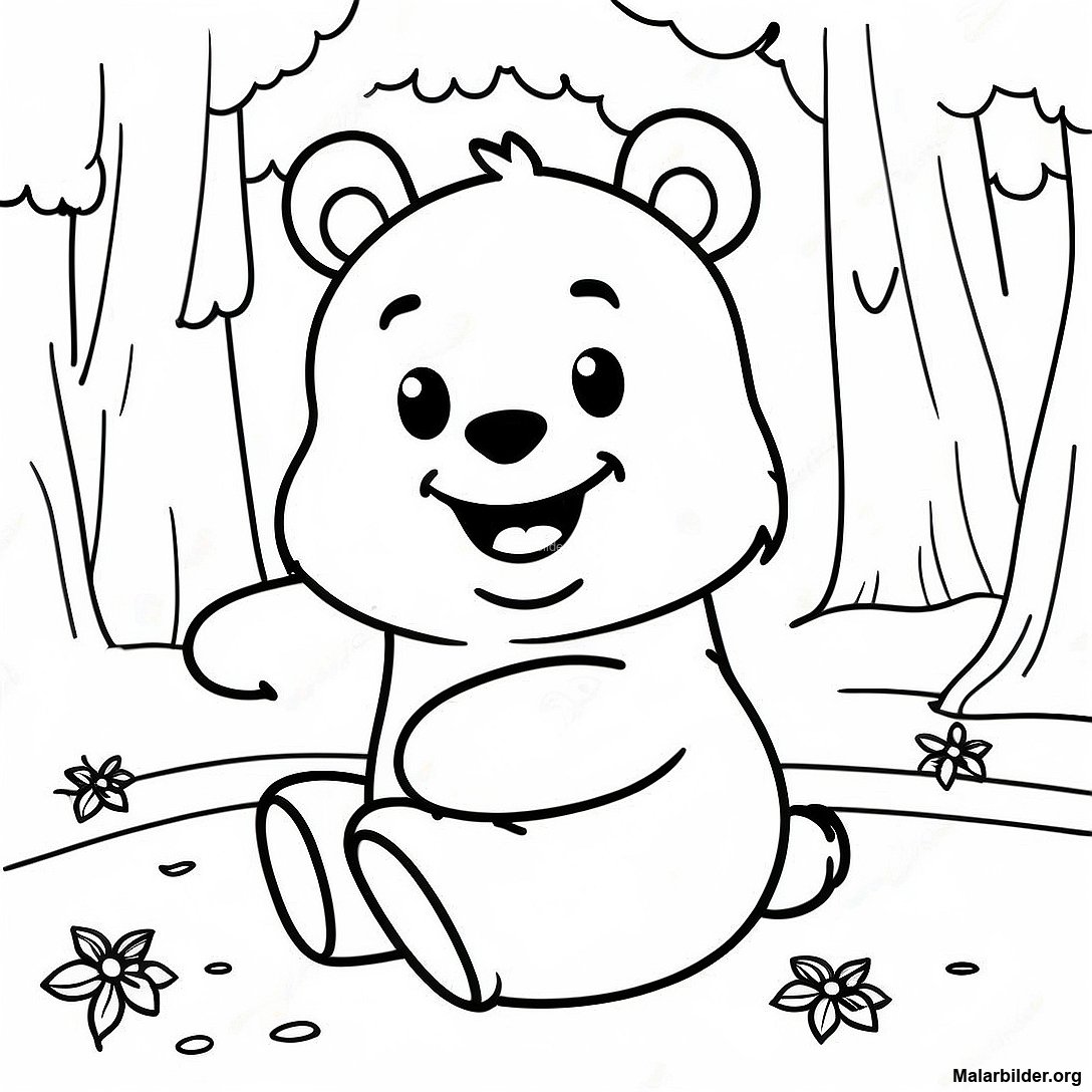 Ladda ner utskrivbar PDF av Lekfull Baby Nalle Puh I Skogen Målarbild