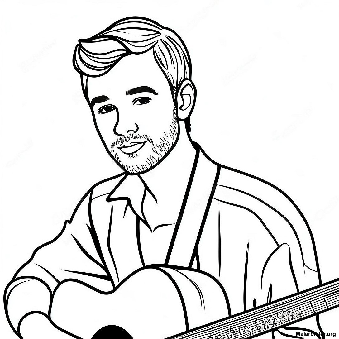 Ladda ner utskrivbar PDF av Liam Payne Med Gitarr Målarbild