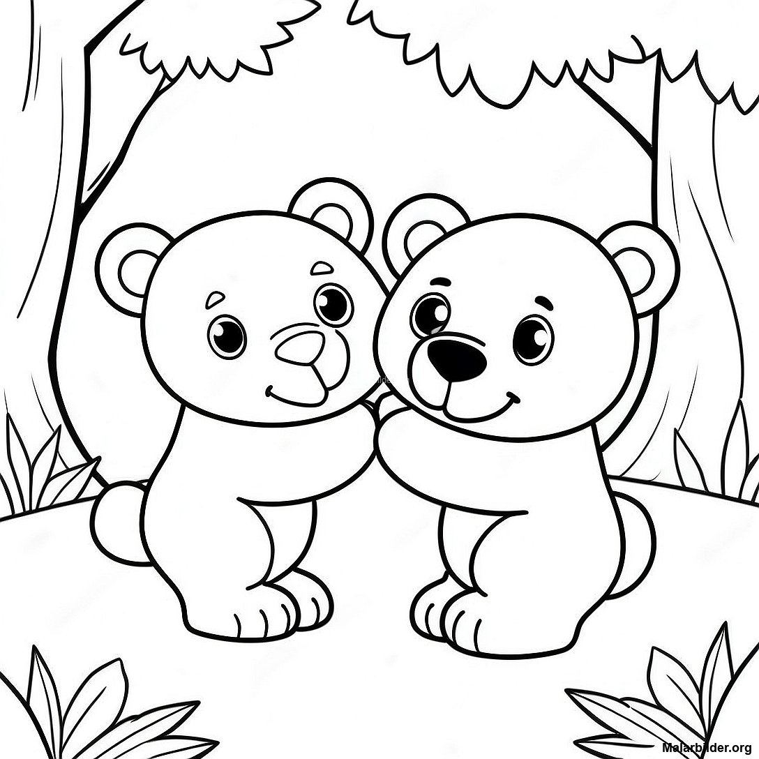Ladda ner utskrivbar PDF av Målarbild Av Söta Ungar Som Leker I Skogen