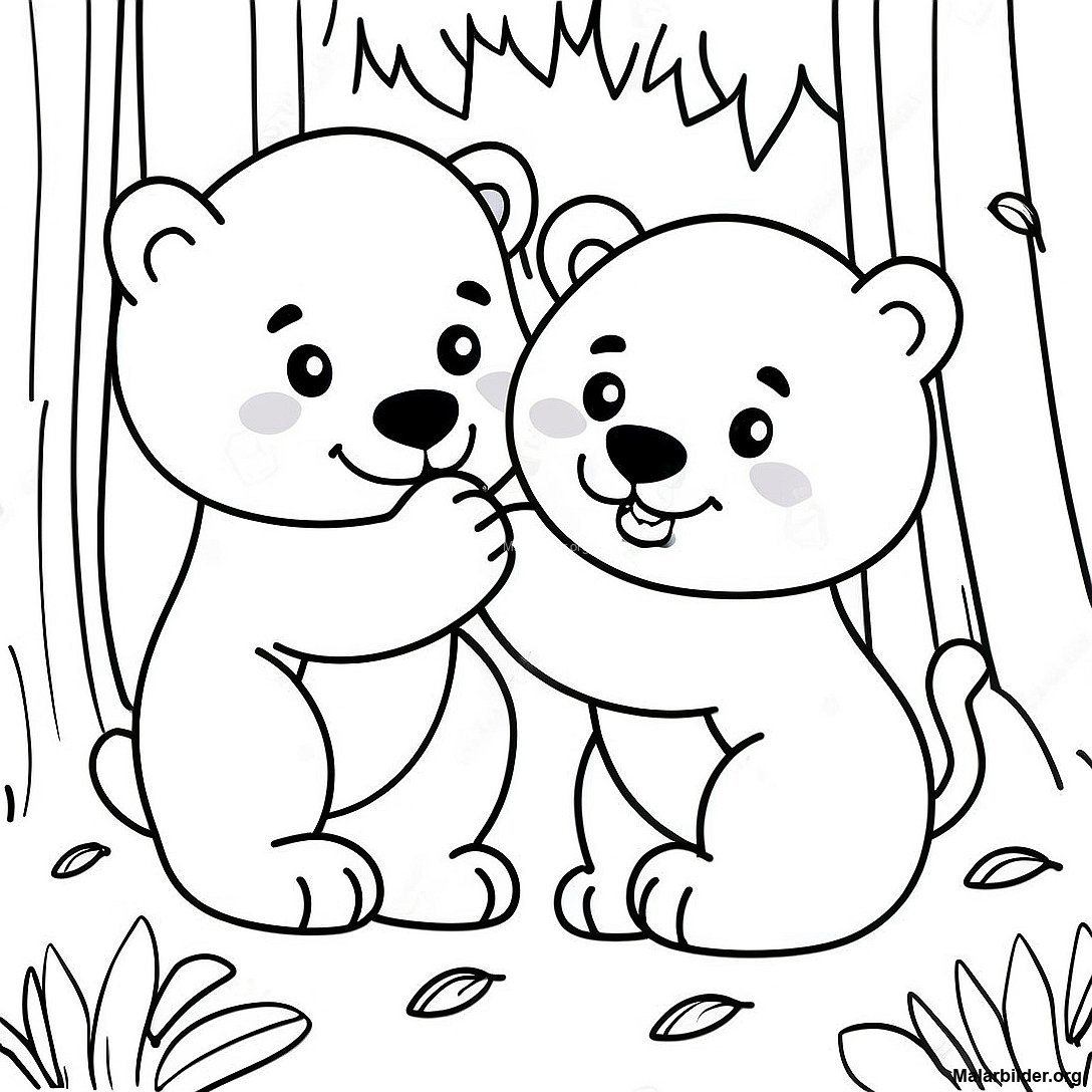 Ladda ner utskrivbar PDF av Målarbild Av Söta Ungar Som Leker I Skogen