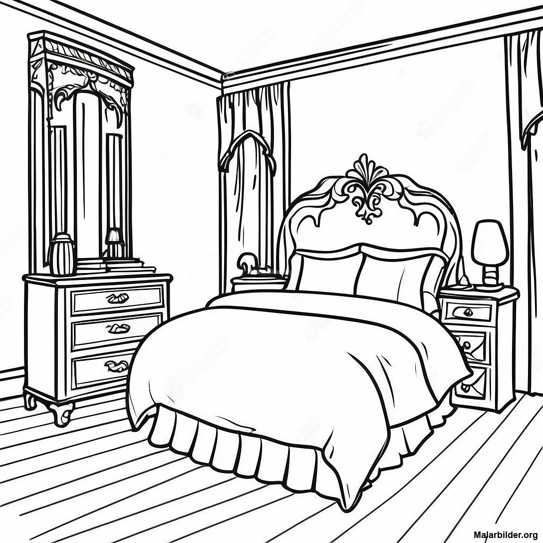Ladda ner utskrivbar PDF av Realistisk Sovrum Målarbild