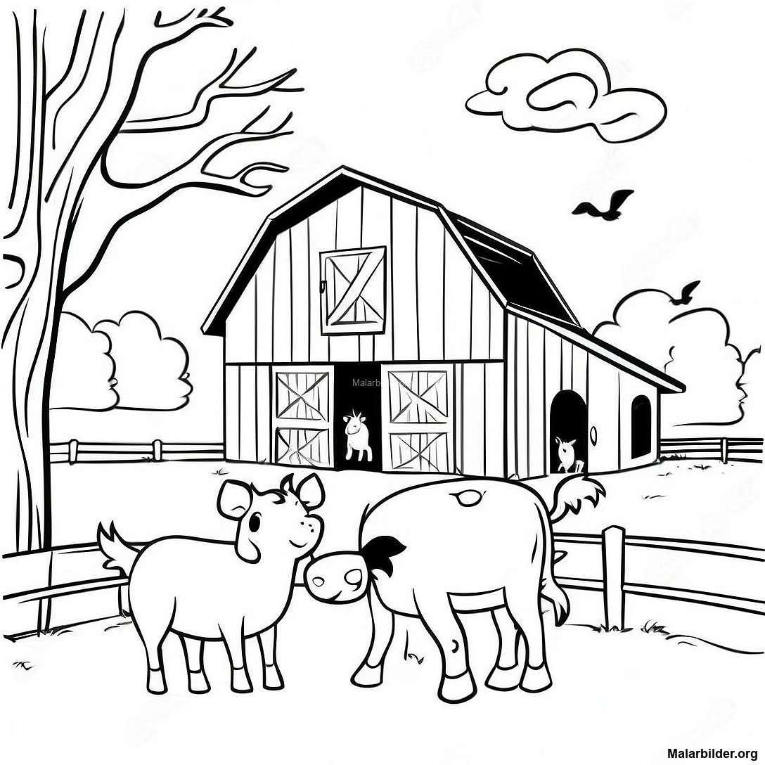 Ladda ner utskrivbar PDF av Rustik Ladugård Med Gårdsdjur Målarbild