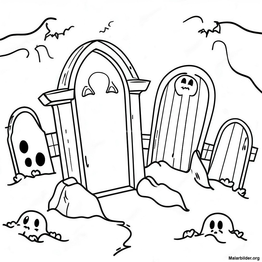 Ladda ner utskrivbar PDF av Skrämmande Gravgård Målarbild