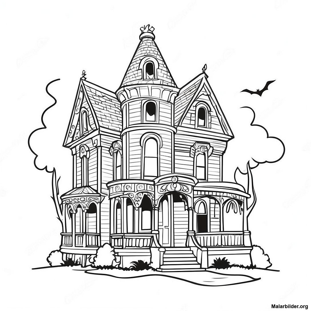 Ladda ner utskrivbar PDF av Skrämmande Victorianskt Hus Målarbild