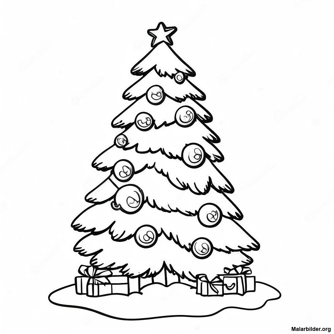 Ladda ner utskrivbar PDF av Snöig Julgran Målarbild