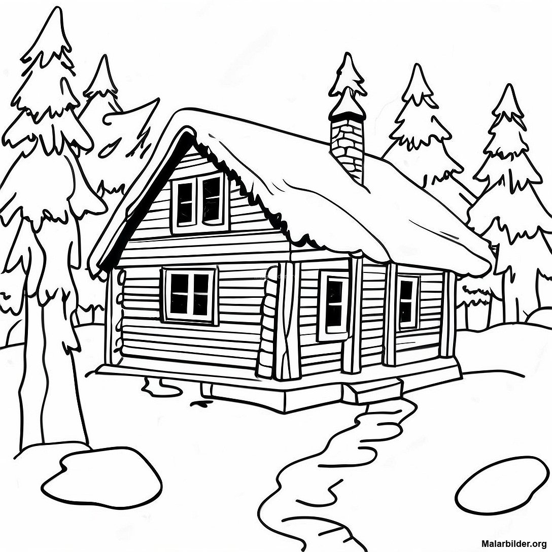 Ladda ner utskrivbar PDF av Snöig Stuga Vinterlandskap Målarbild