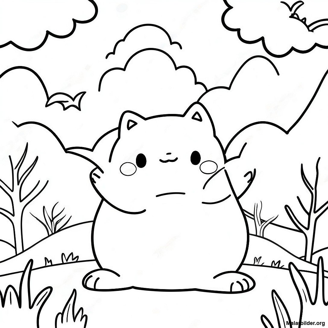 Ladda ner utskrivbar PDF av Snorlax I Ett Drömlandskap Målarbild