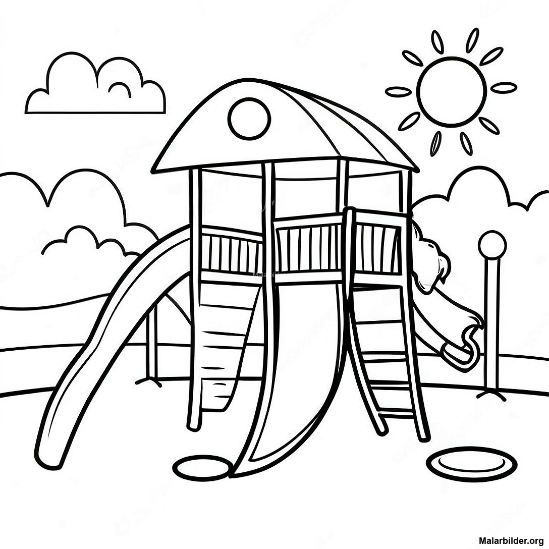 Ladda ner utskrivbar PDF av Solig Dag På Lekplatsen Målarbild
