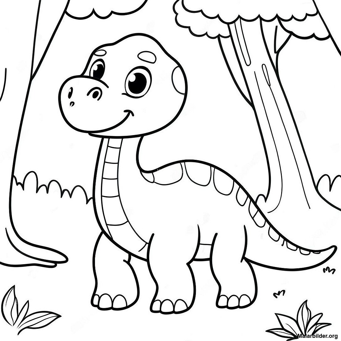 Ladda ner utskrivbar PDF av Söt Brontosaurus I En Skog Målarbild