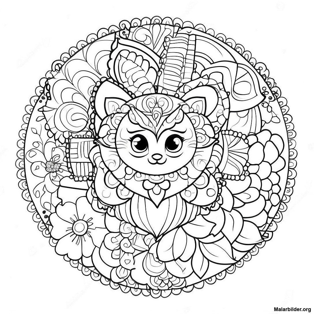 Ladda ner utskrivbar PDF av Söt Djurmandala Målarbild