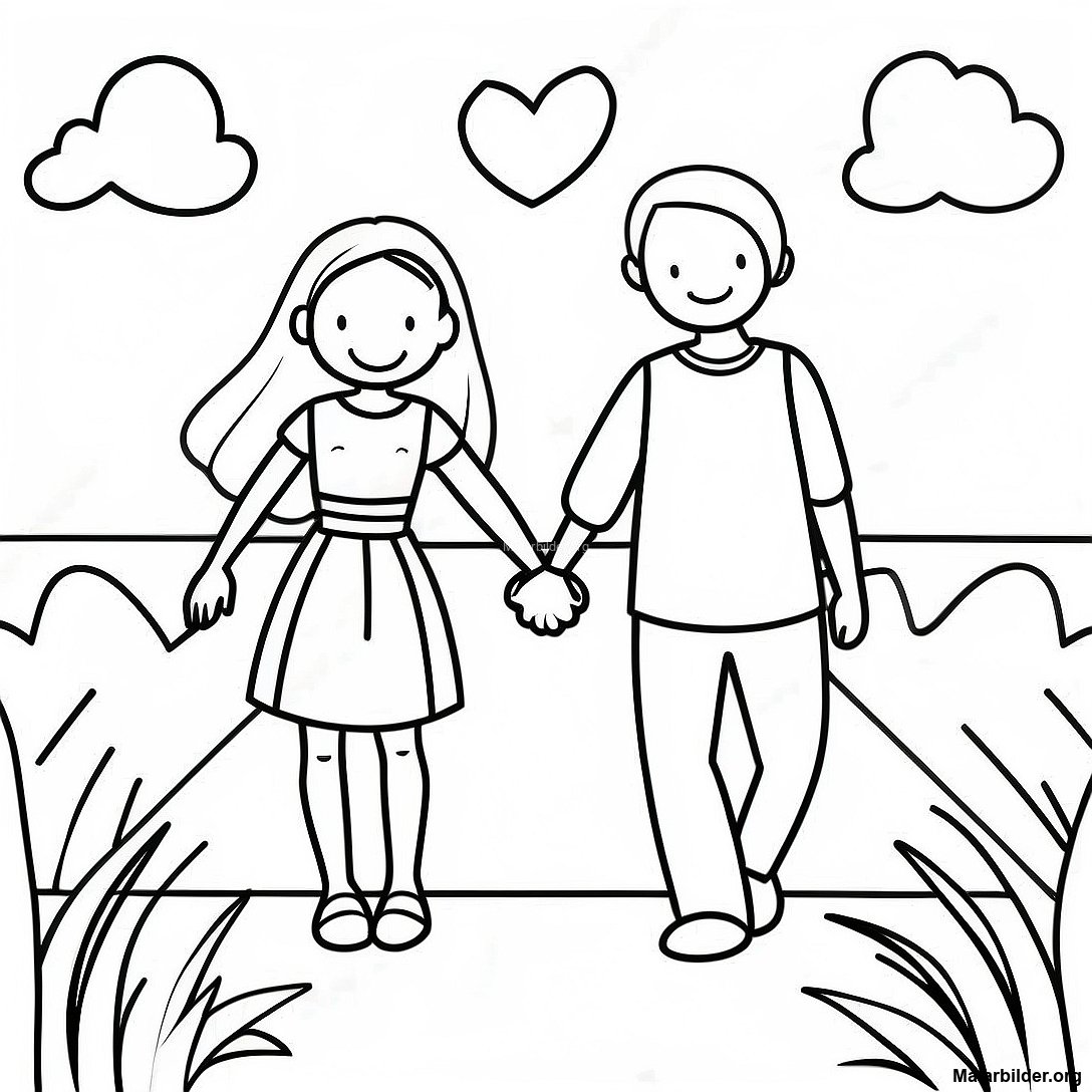 Ladda ner utskrivbar PDF av Söt Par Som Håller Händerna Målarbild