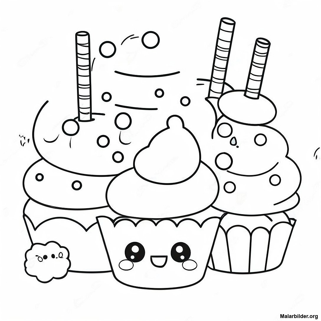Ladda ner utskrivbar PDF av Söta Num Noms Med Cupcakes Målarbild