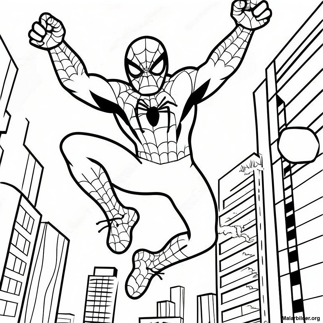 Ladda ner utskrivbar PDF av Spiderman Svingar Genom Staden Målarbild