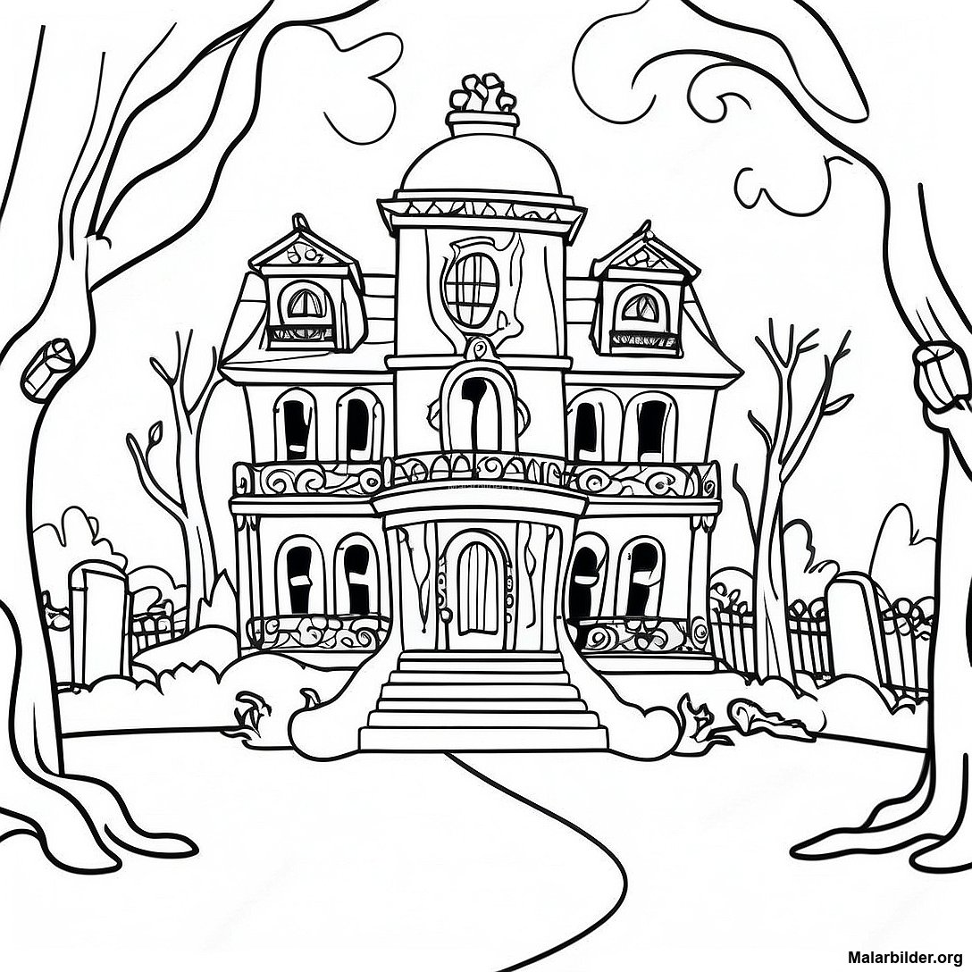 Ladda ner utskrivbar PDF av Spökhus Med Ghouls Målarbild