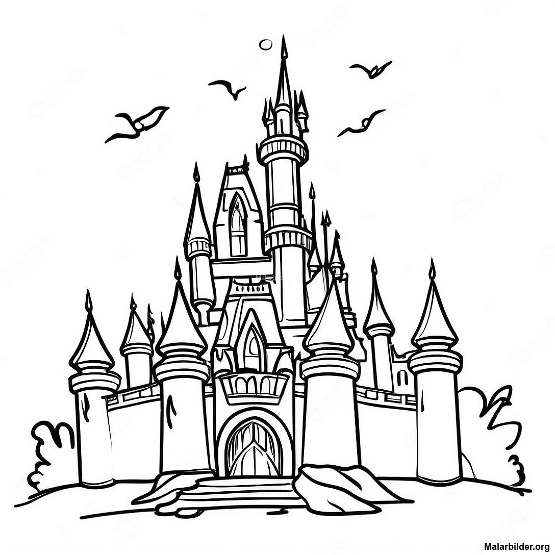 Ladda ner utskrivbar PDF av Spökligt Disney-Slott Målarbild