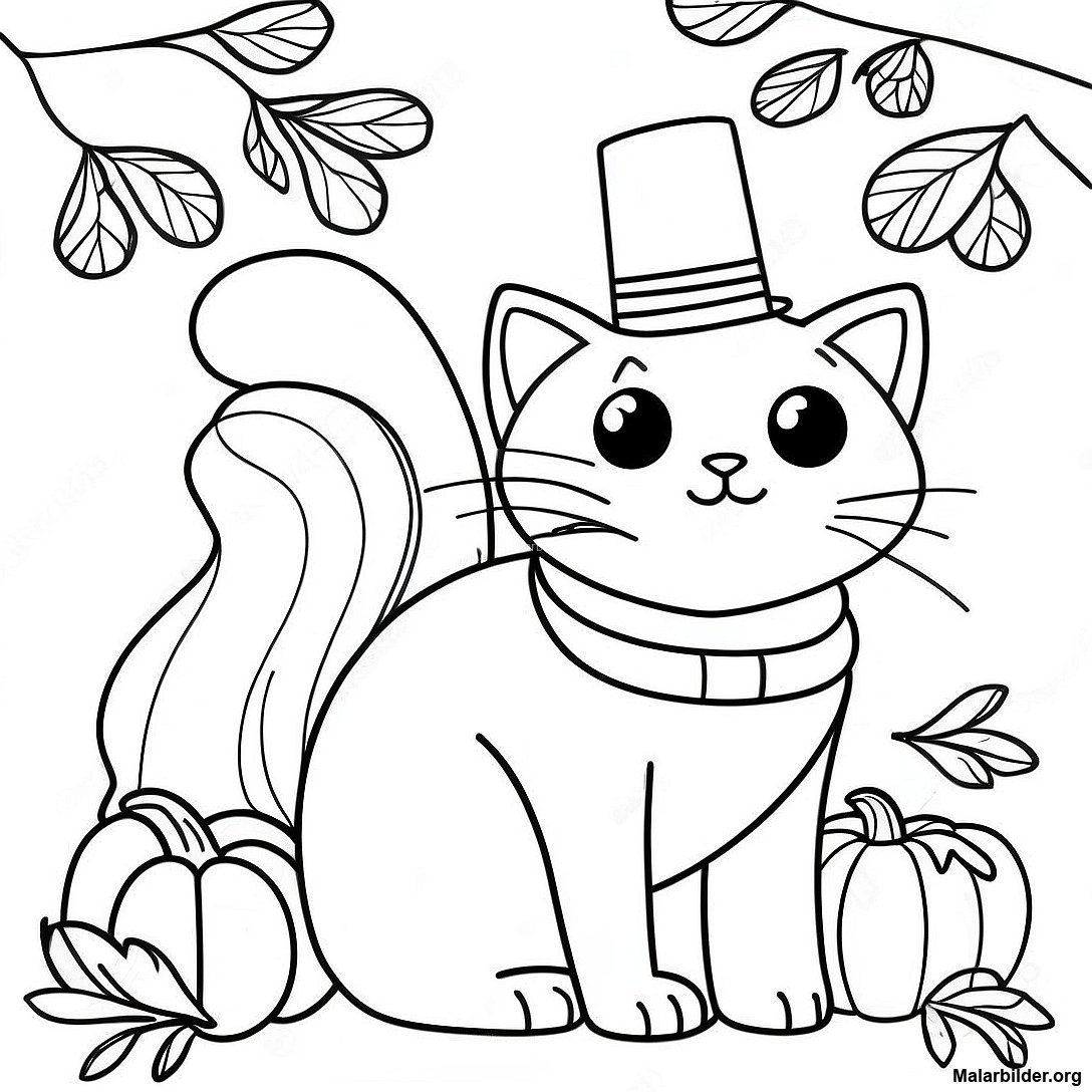 Ladda ner utskrivbar PDF av Tacksägelsekatt Målarbild
