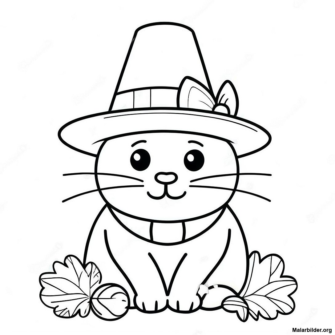 Ladda ner utskrivbar PDF av Tacksägelsekatt Med Pilgrimhatt Målarbild