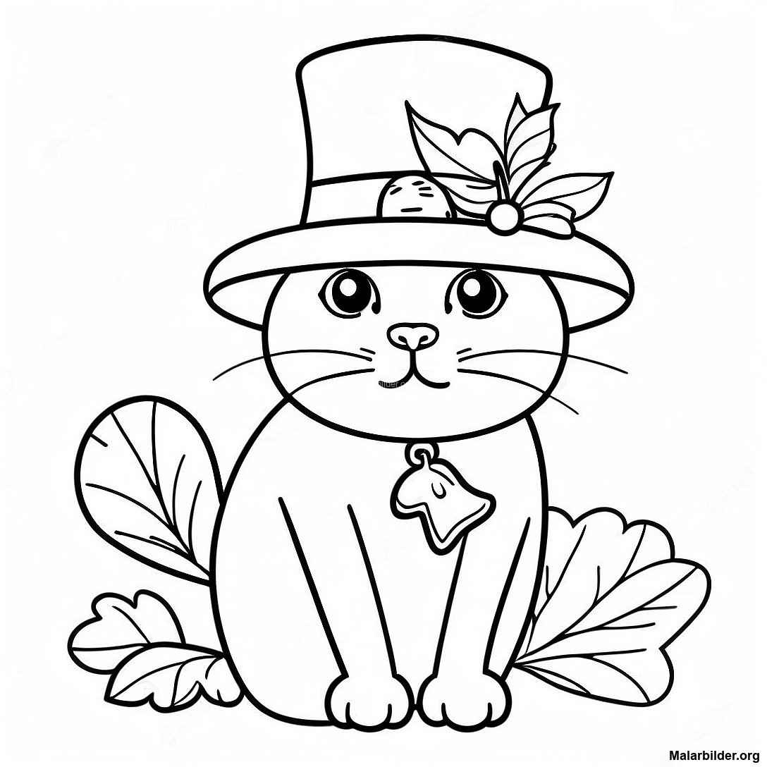 Ladda ner utskrivbar PDF av Tacksägelsekatt Med Pilgrimhatt Målarbild