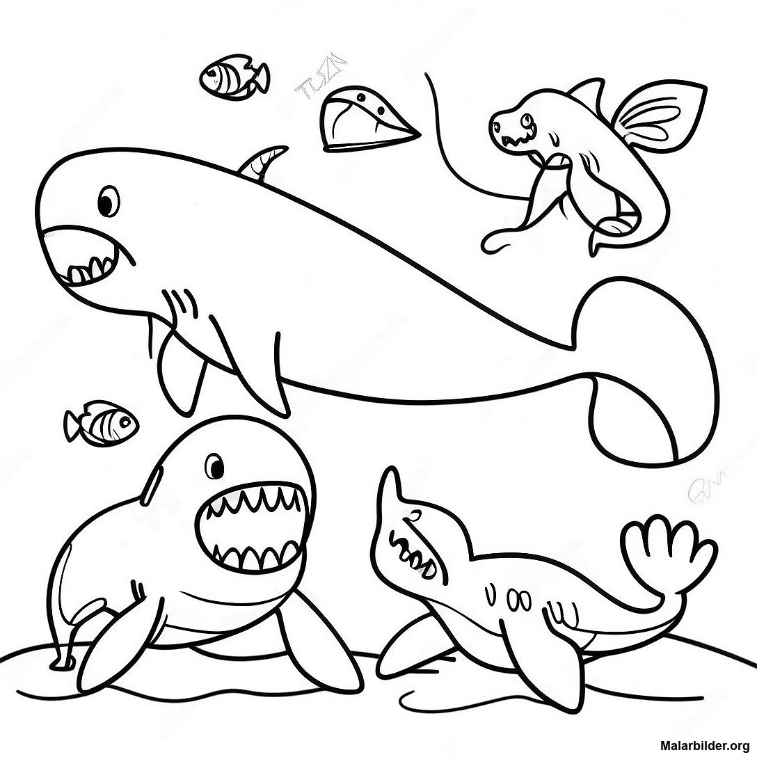 Ladda ner utskrivbar PDF av Tecknad Megalodon Med Vänner Målarbild