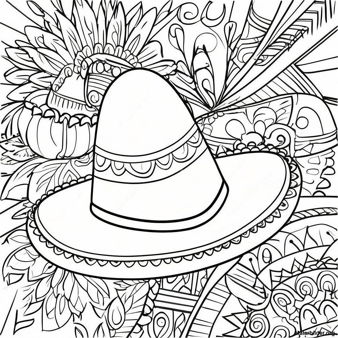 Ladda ner utskrivbar PDF av Traditionell Mexikansk Hatt Målarbild